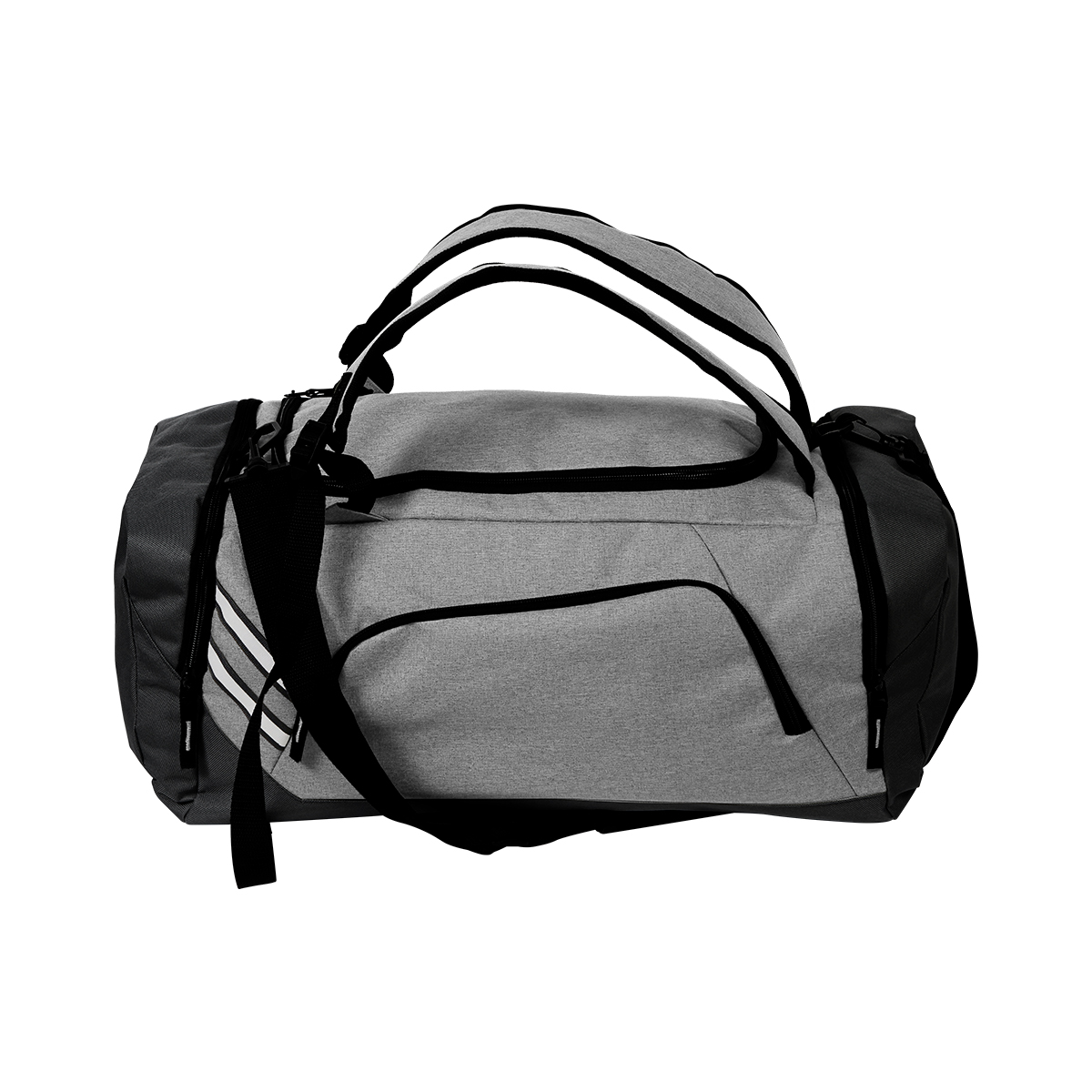 Maleta deportiva fabricada en poliéster, con 1 bolsillo frontal, 2 laterales, correa de hombro y cintas (tipo mochila) para colgar en espalda o para cargarla con las manos. Esta maleta deportiva es la opción ideal para aquellos que buscan un equilibrio perfecto entre practicidad y estética. | Medidas: 30×55 cm.
