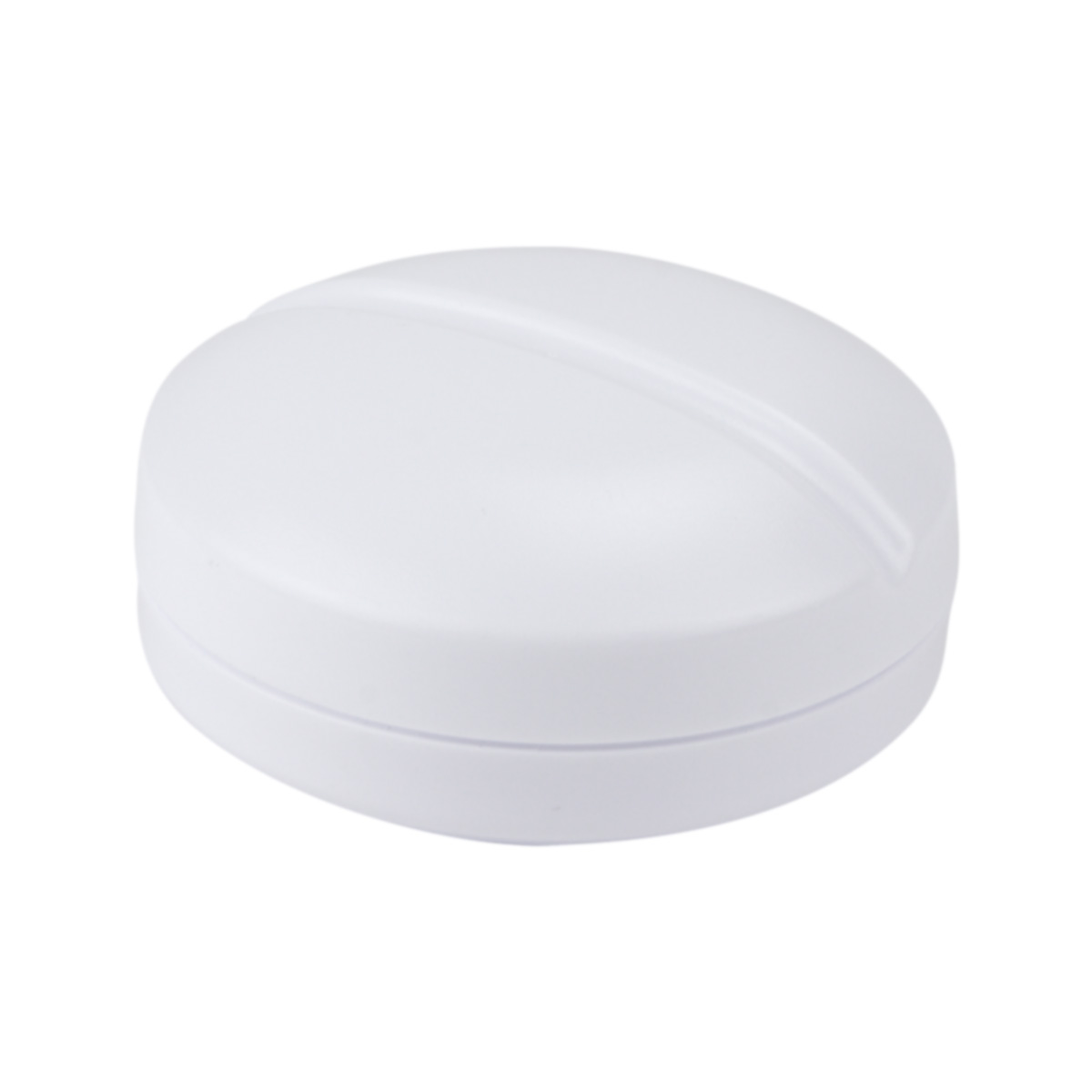 Pastillero con 4 compartimentos. | Medidas: 6.4 cm Diámetro | Técnica: Serigrafía / Tampografía | Área de impresión: 3 x 1.5 cm
